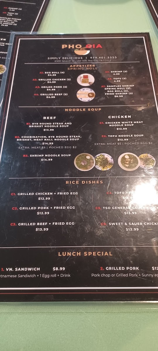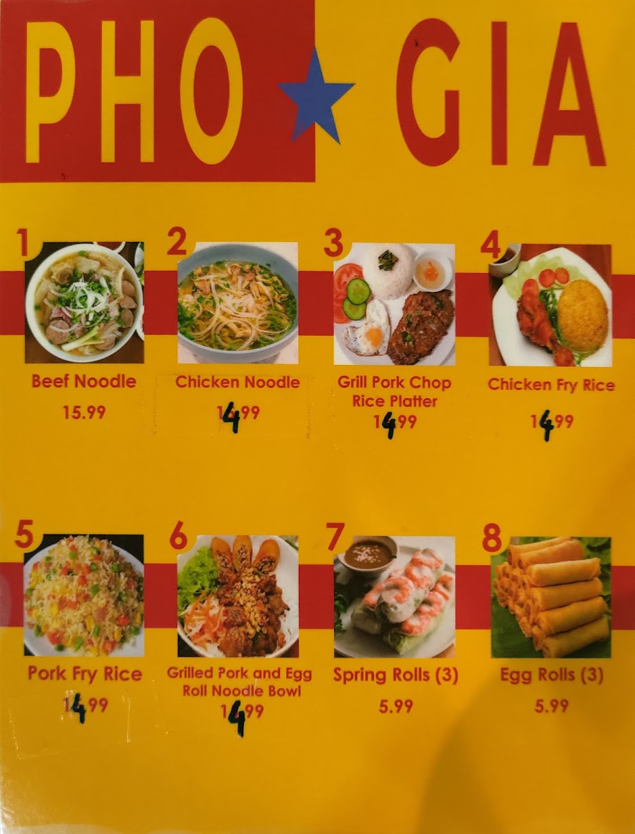 Pho Gia Menu